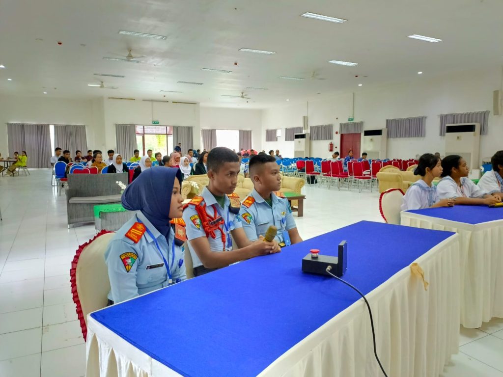 1. SAMBUTAN – Stefanus Timang, Asisten Bidang Pemerintahan dan Kesejahteraan Rakyat Setda Mimika saat menyampaikan sambutan.2. LAPORAN KEGIATAN – Lodefikus Kaize, S.STP, Kasubid Pembinaan Karakter Bangsa pada Bakesbangpol Mimika saat membacakan laporan kegiatan.3. WAWANCARA – Yan Selamat Purba, Kepala Bakesbangpol Mimika saat diwawancarai awak media terkait lomba cerdas cermat.4. DEWAN JURI – Para dewan juri dan pegawai Bakesbangpol Mimika saat mengikuti lomba pembukaan cerdas cermat tingkat SMA/SMK se-Mimika.5. PUKUL TIFA – Stefanus Timang, Asisten Bidang Pemerintahan dan Kesejahteraan Rakyat Setda Mimika memukul tifa menandai pembukaan lomba.6. PESERTA – Peserta lomba dari SMA Taruna saat mengikuti lomba.7. MENGIKUTI – Paras peserta terlihat fokus menyimak pertanyaan yang dilontarkan tim juri.8. MENGHADIRI – Inosensius Yoga Pribadi, Staf Ahli Bidang Ekonomi, Keuangan dan Pembangunan Pemkab Mimika didampingi tamu undangan saat mengikuti dan menyaksikan lomba cerdas cermat.9.FOTO BERSAMA – Inosensius Yoga Pribadi, Staf Ahli Bidang Ekonomi, Keuangan dan Pembangunan Pemkab Mimika foto bersama siswa-siswi pemenang lomba cerdas cermat.10. FOTO BERSAMA – Inosensius Yoga Pribadi,Staf Ahli Bidang Ekonomi Keuangan dan Pembangunan Setda Pemkab Mimika didampingi Lodefikus Kaize, S.STP foto bersama tim juri dan panitia kegiatan.11. FOTO BERSAMA – Stefanus Timang, Asisten Bidang Pemerintahan dan Kesejahteraan Rakya Setda Mimika didampingi Yan Selamat Purba Kepala Kesbangpol saat berfoto bersama tim juri.
