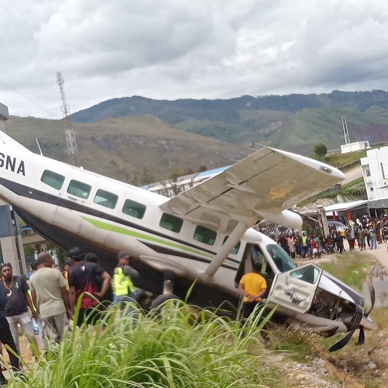 TERGELINCIR- Pesawat milik PT. Smart Cakrawala Aviasi PK-SNA tergelincir di Bandara Tiom, Kabupaten Lanny Jaya, Provinsi Papua Pegunungan, pada Sabtu (11/10/2025) sekitar pukul 09:40 WIT