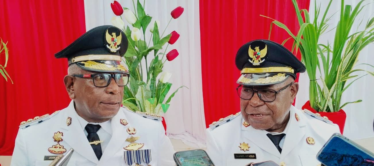 Bupati Mimika Johannes Rettob dan Wakil Bupati Emanuel Kemong saat diwawancarai awak media, Senin (27/4/2026) (FOTO:Mega Irianti/TimeX)