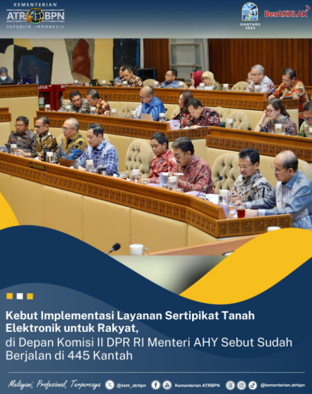 Kebut Implementasi Layanan Sertipikat Tanah Elektronik untuk Rakyat, di Depan Komisi II DPR RI Menteri AHY Sebut Sudah Berjalan di 445 Kantah
