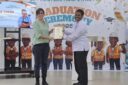 - PESAN dan KESAN – Martha Welma Benamen selaku Kepala Sekolah dan guru olah raga SMP N 9 saat memberikan kesan dan pesan selama kegiatan.