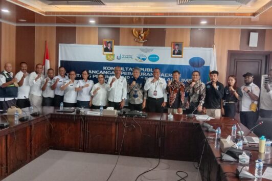 - FOTO BERSAMA – Paulus Dumais, Asisten I Setda Mimika didampingi Yopi Toisuta, Kepala Disparbudpora Mimika dan Moh. Nanang Kusuma, Narasumber saat foto bersama para peserta pada 7 Juni 2023.