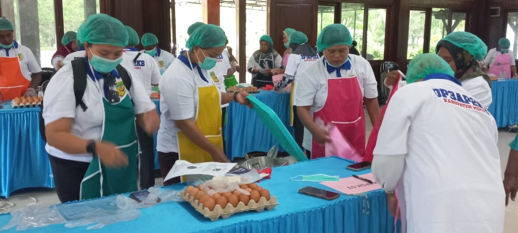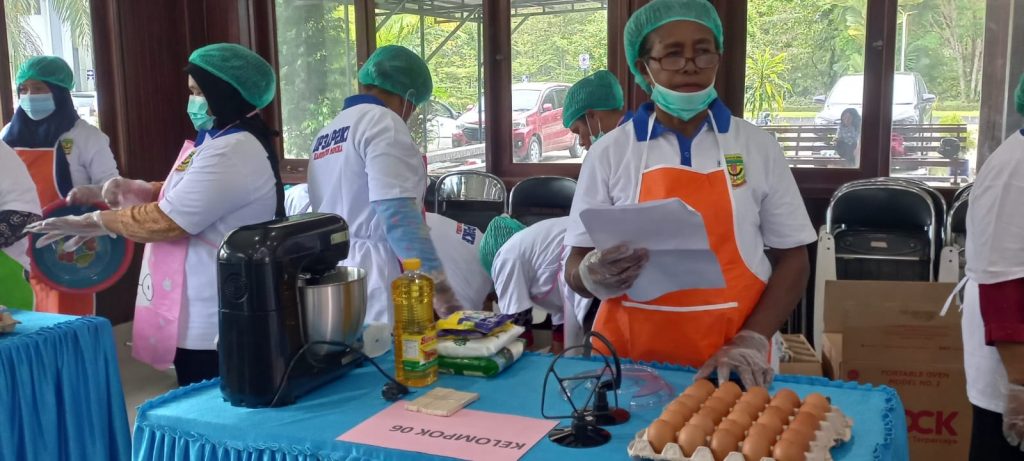 PESERTA – Peserta, terlihat sedang sibuk mempersiapkan bahan kue, yang merupakan bahan lokal Timika.ARAHAN – Peserta pelatihan sedang mendengar arahan dari pelatih, sebelum membuat kue berbahan lokal.ARAHAN – Terlihat, ibu Sirwa (pelatih) saat memberikan arahan kepada para kader Posyandu sebelum melangsungkan pelatihan pembuatan kue berbahan lokal.PERALATAN – Nampak para peserta pelatihan sedang berdiri di meja yang penuh dengan, peralatan pembuatan kue, beserta bahan-bahan kue, yang telah diletakan berjejer di atas meja.KETERANGAN – Hermalina Imbiri Kepala Dinas DP3AP2KB Kabupten Mimika saat memberikan keterangan kepada awak media, terkait pelatihan pembuatan kue yang melibatkan para kader Posyandu.PETUNJUK – Dewi Karuapi, salah satu pegawai DP3AP2KB Mimika saat memberikan petunjuk kepada para kader, sebelum pelatihan berlangsung.BERPOSES – Para kader Posyandu, sedang berpose bersama sebelum mengikuti pelatihan pembuatan kue.KADER – Para kader sedang mengecek kembali bahan-bahan kue, sebelum pelatihan dimulai.PESERTA – Para peserta sedang mengecek kelengkapan, bahan-bahan pembuatan kue dan perlatan masak, sebelum memulai pelatihan.MEMBUAT KUE – Terlihat para peserta sedang membuat kue dengan memberikan toping meses dan keju diatas kue yang selesai dibuat, pada saat pelatihan.PERSIAPAN – Terlihat para peserta yang merupakan para kader Posyandu, sedang sibuk mempersiapkan kelengkapan bahan kue, sebagiannya lagi sedang memantau resep kue.