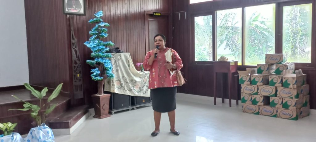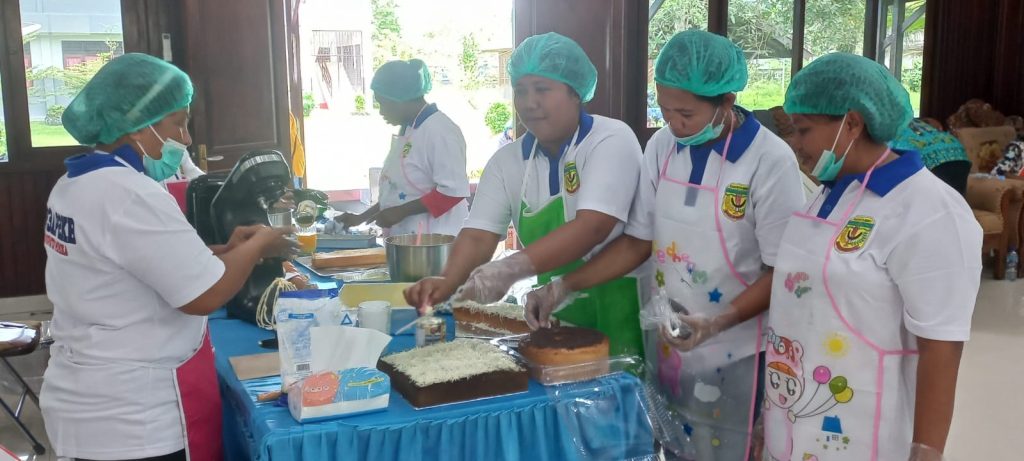 DINAS Pemberdayaan Perempuan, Perlindungan Anak, Pengendalian Penduduk dan Keluarga Berencana (DP3AP2KB) Kabupaten Mimika, melaksanakan kegiatan peningkatan kapasitas sumber daya lembaga penyedia layanan, peningkatan kapasitas kualitas keluarga melalui pelatihan pembuatan kue dari bahan lokalb yang melibatkan petugas Posyandu, di Aula Keuskupan Bobaigo, Jumat (13/9/2024)