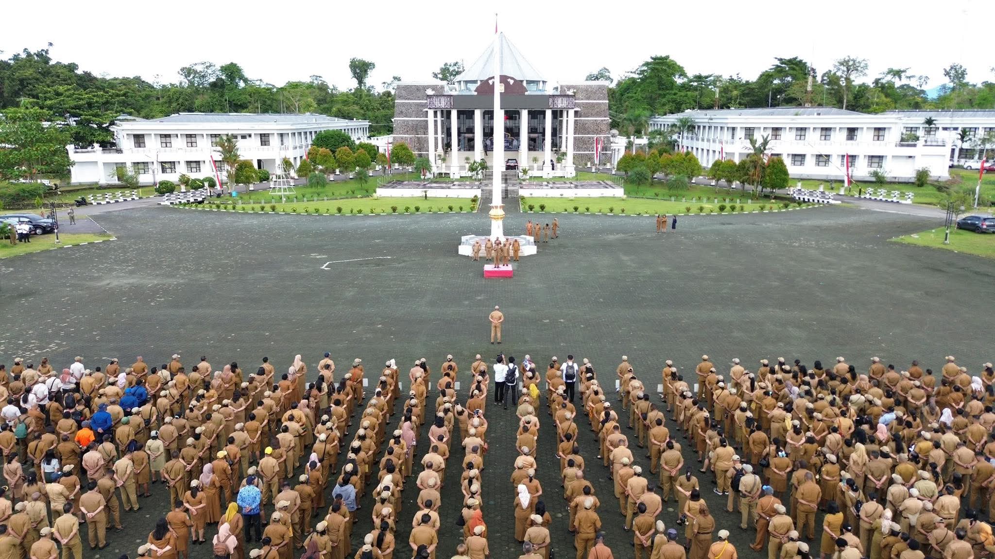 APEL – Wakil Bupati Mimika, Emanuel Kemong saat memimpin apel pagi di kantor Pusat Pemerintahan SP3, Senin (20/4/2026). (FOTO:ISTIMEWA)