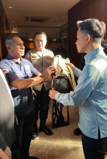 Pengurus Karang Taruna Mimika menyebut penyerahan noken dan patung tersebut sebagai simbol penghormatan sekaligus bentuk dukungan terhadap pemerintah sebagai pelayan masyarakat.