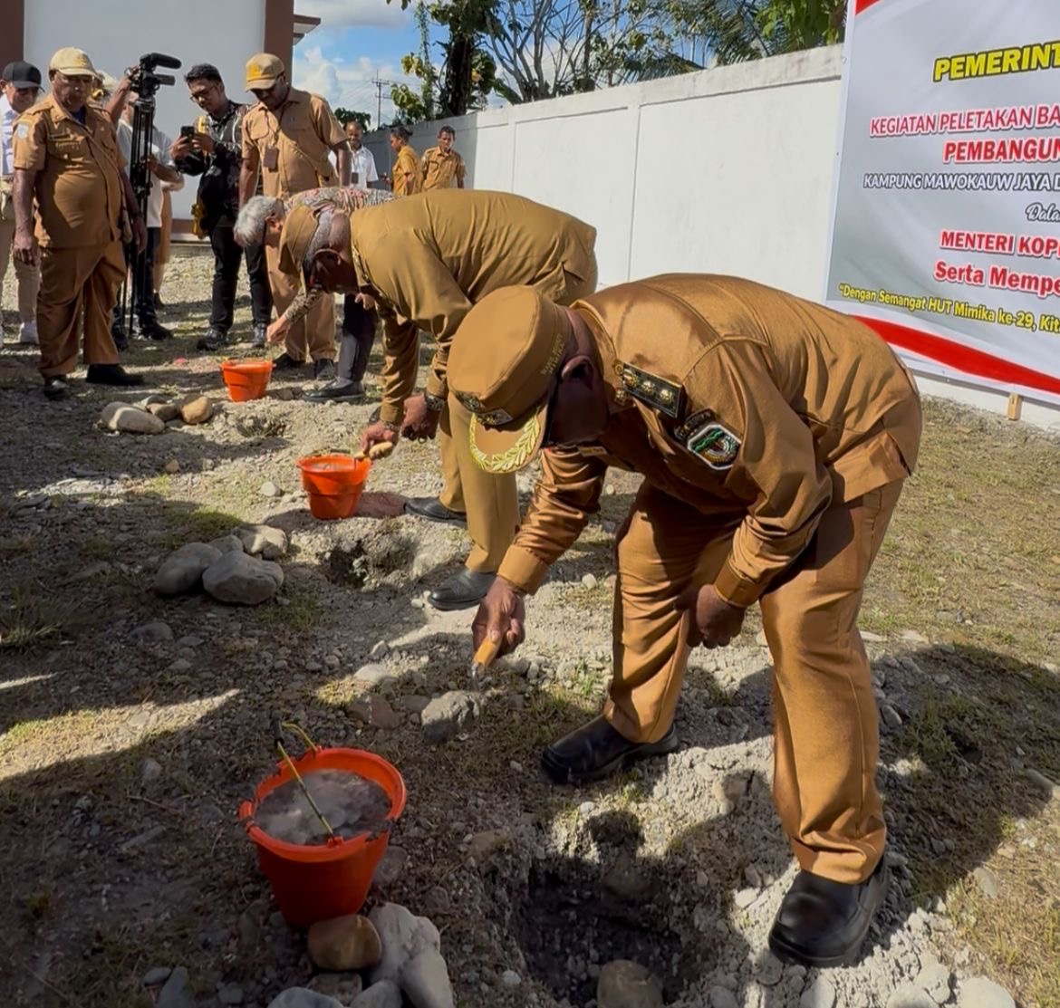 Peletakan batu pertama ini menandai dimulainya pembangunan tahap awal Koperasi Merah Putih Kampung Mawokauw Jaya dan Koperasi Cipta Kasih Amuro, sebagai bagian dari penguatan ekonomi kerakyatan di Kabupaten Mimika.
