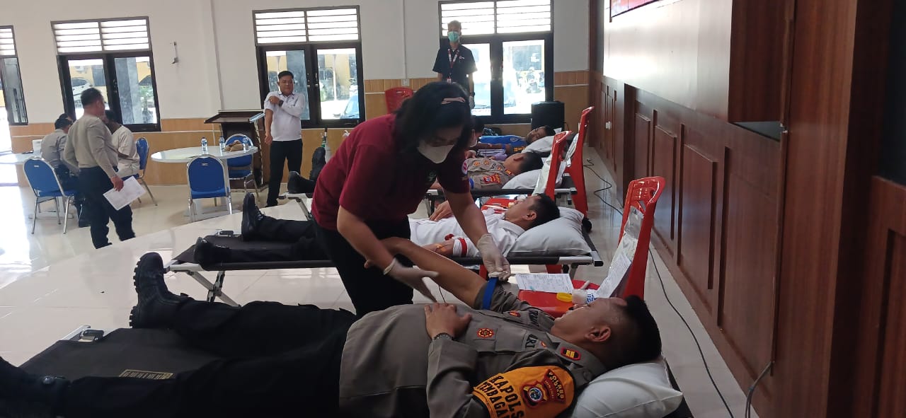 DONOR DARAH – Kapolsek Tembagapura Iptu Firman saat mengikuti donor darah di Aula Polres Mimika, Senin (27/10). (Foto: GREN/TimeX)