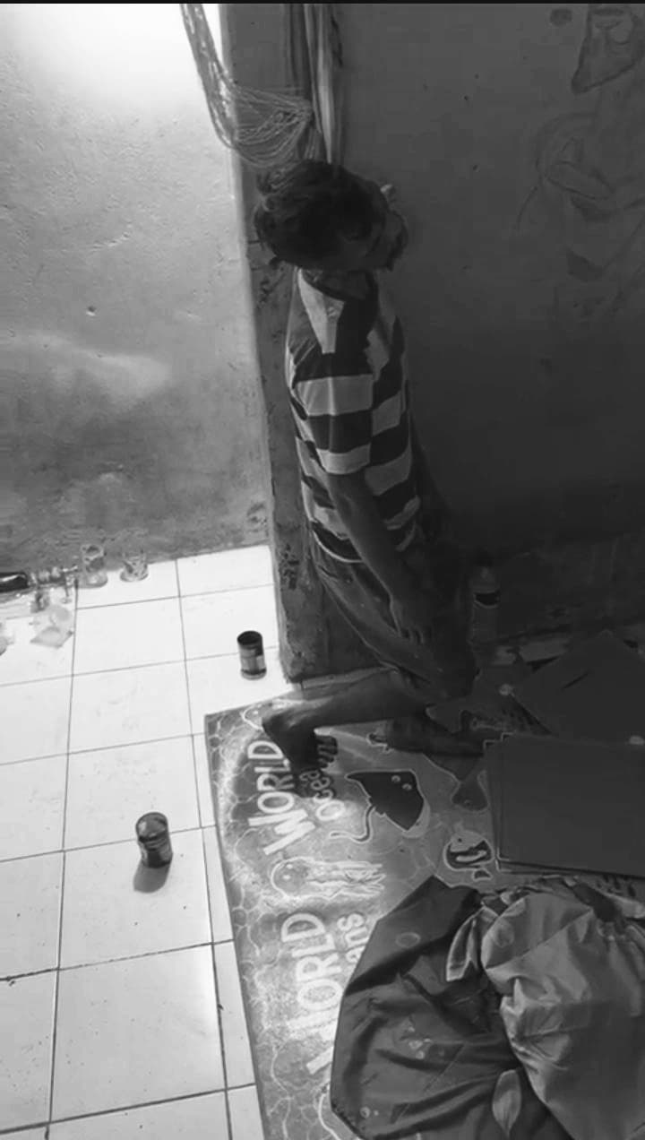 GANTUNG DIRI – Tampak korban YS saat ditemukan gantung diri di kamar kosnya di kompleks Pasar Damai, Senin (16/3/2026). (FOTO: IST/TIMEX)