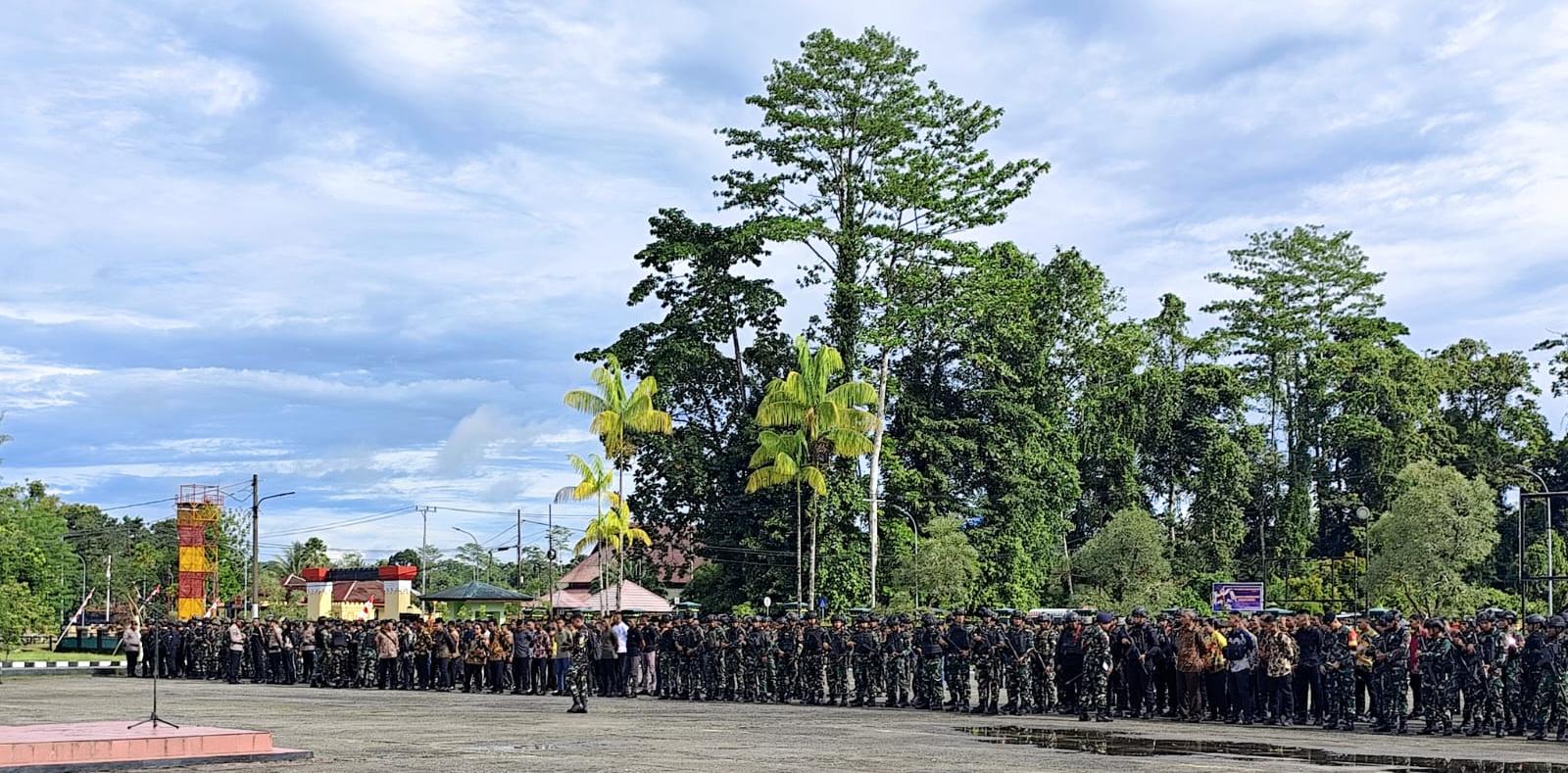 APEL PENGAMANAN – Ratusan personel TNI-Polri mengikuti apel gelar pasukan di Mako Kodim 1710/Mimika, Senin (20/4/2026), dalam rangka pengamanan kunjungan Wakil Presiden RI di Timika. (FOTO: IST/TIMEX)