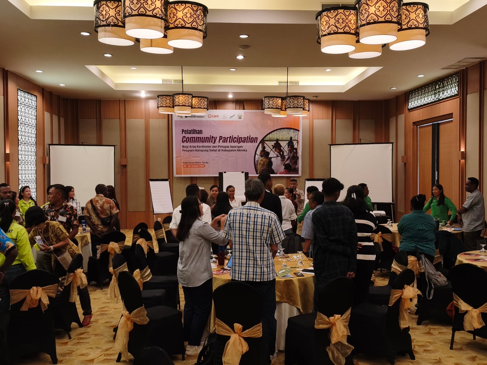 PELATIHAN – YPMAK bersama Yayasan Care Peduli menggelar pelatihan Community Participation bagi petugas lapangan Program Kampung Sehat di Swiss-Belinn Hotel Timika, Rabu (28/1/2026), guna mendorong kemandirian kampung dalam isu kesehatan. (Foto: Dok. YPMAK)